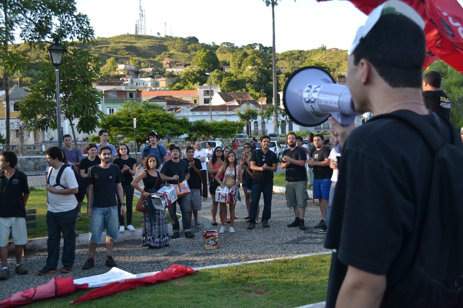 Após a Viação Presidente, empresa responsável pelo transporte público na cidade de São João del-Rei, realizar um aumento nas tarifas de R$ 2,00 para R$ 2,25 no início do ano de 2013, o grupo Anonymous de São João del-Rei decidiu fazer um manifesto reivindicando a revogação do aumento por parte do prefeito Helvécio Reis. Insatisfeitos com a atual situação do transporte público na cidade, os manifestantes se reuniram por volta das 18h da última terça-feira (22) na Praça da Estação, de onde seguiram em direção à prefeitura municipal.