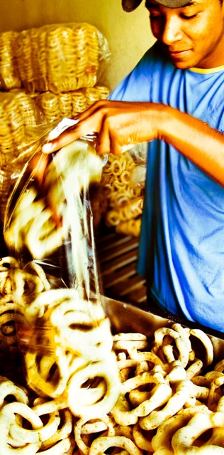 consomem cerca de 4,8 mil dúzias de ovos e 20 toneladas de polvilho. Todo o