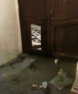 portas da entrada principal foi danificada e muito lixo foi